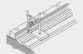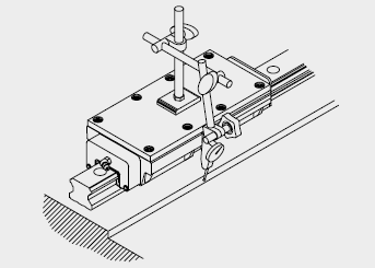 依直線塊規(guī),使用千分量表校準(zhǔn)基準(zhǔn)側(cè)導(dǎo)軌之側(cè)邊基準(zhǔn)面,從導(dǎo)軌的一端開始校準(zhǔn)并依序以特定的扭力鎖緊裝配螺絲。