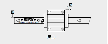 3. 確認(rèn)安裝基準(zhǔn)面:導(dǎo)軌基準(zhǔn)面為HIWIN字樣旁箭頭所指的側(cè)邊平面(B);而滑塊基準(zhǔn)面則為經(jīng)過研磨的光滑表面(D)。(如圖二)