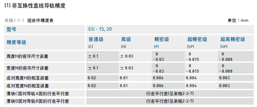 EG系列直線導軌的精度,分為普通、高、精密、超精密、超高精密級共五級,客戶可依設備精度