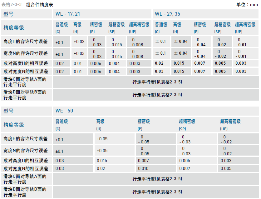 WE系列直線導軌的精度,分為普通、高、精密、超精密、超高精密級共五級,客戶可依設備精度需求選用精度。