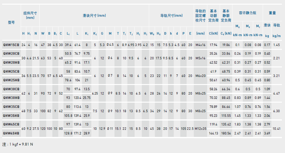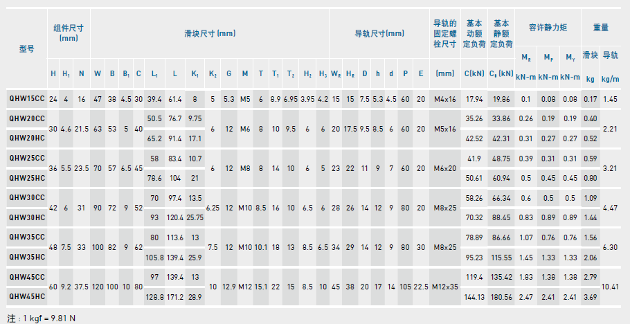 直線(xiàn)導(dǎo)軌QH系列之CB、CC、HB、HC對(duì)比