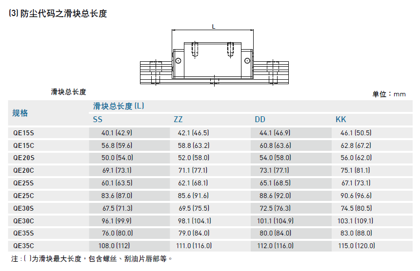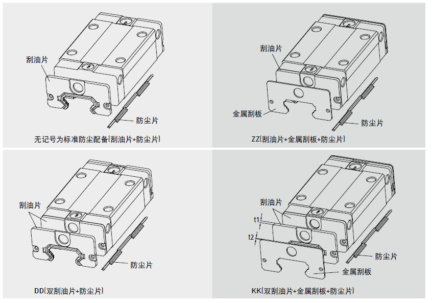 直線導(dǎo)軌QE系列防塵配備說明及防塵代碼